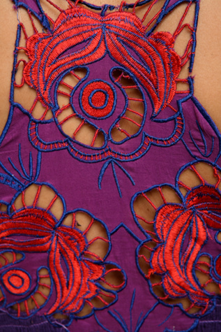 Dresses were worn with structured coats and cinched at the waist with a skinny studded belts on the runway. The ruched and gathered detailing on this piece was evident across the board and the boned corset adds definition.